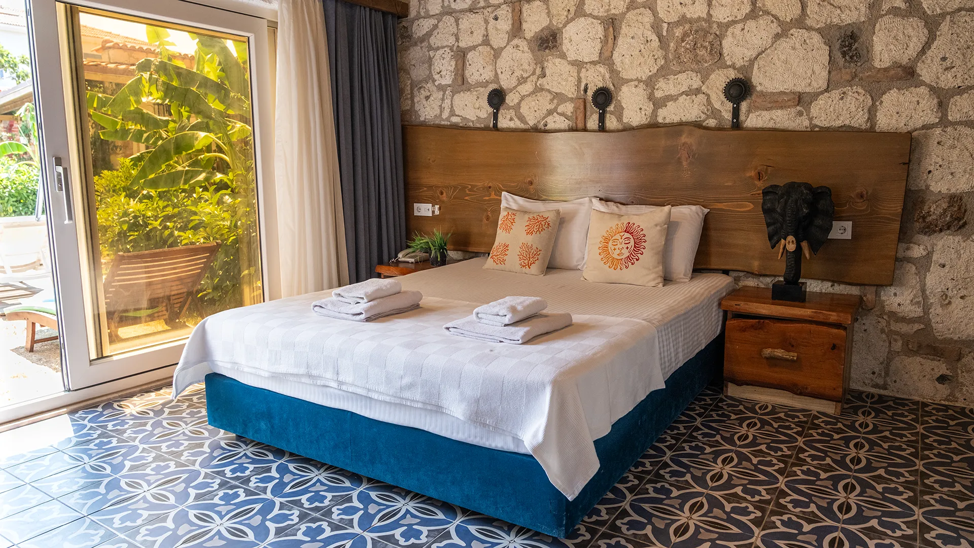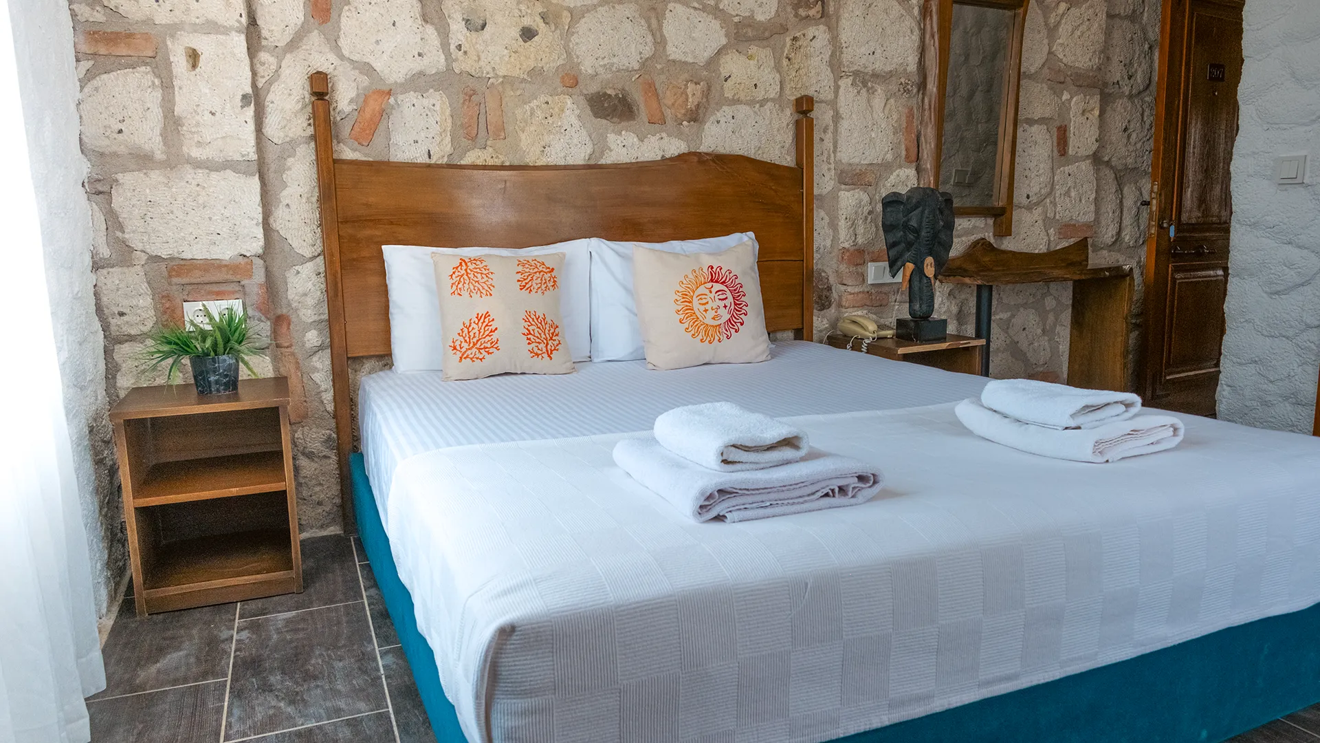 Ana binada yer alan Standart Odamız, geleneksel Alaçatı mimarisi ile çağdaş konforu bir araya getiriyor. Doğal taş duvarlar, yüksek tavanlar ve sade dekorasyon, misafirlerine huzurlu ve dengeli bir yaşam alanı sunar. İşlevsel ve zarif detaylarla donatılmış bu oda, sakin ve keyifli bir konaklama için özel olarak tasarlanmıştır.