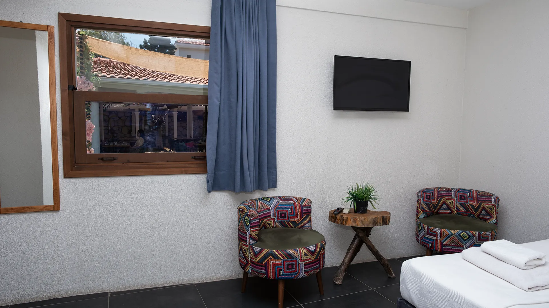 Doğal taş duvarların sunduğu otantik atmosferle tasarlanan bu oda, sade çizgilerle dingin bir iç mekân yaratır. Alaçatı’nın özgün yapısını yansıtan detaylar, konforlu bir konaklamaya davet eder. Sessizliği, sadeliği ve estetik anlayışı bir arada yaşamak isteyen misafirlerimiz için ideal bir tercihtir.